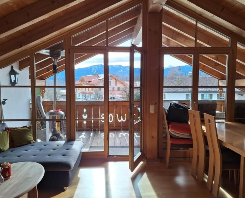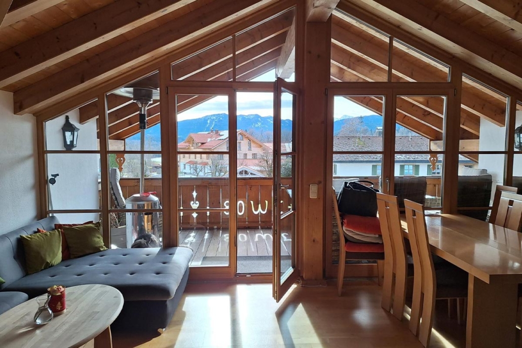 Die Panoramawohnung macht ihrem Namen alle Ehre, da Sie von dort aus den perfekten Blick auf die umliegende Bergwelt haben.