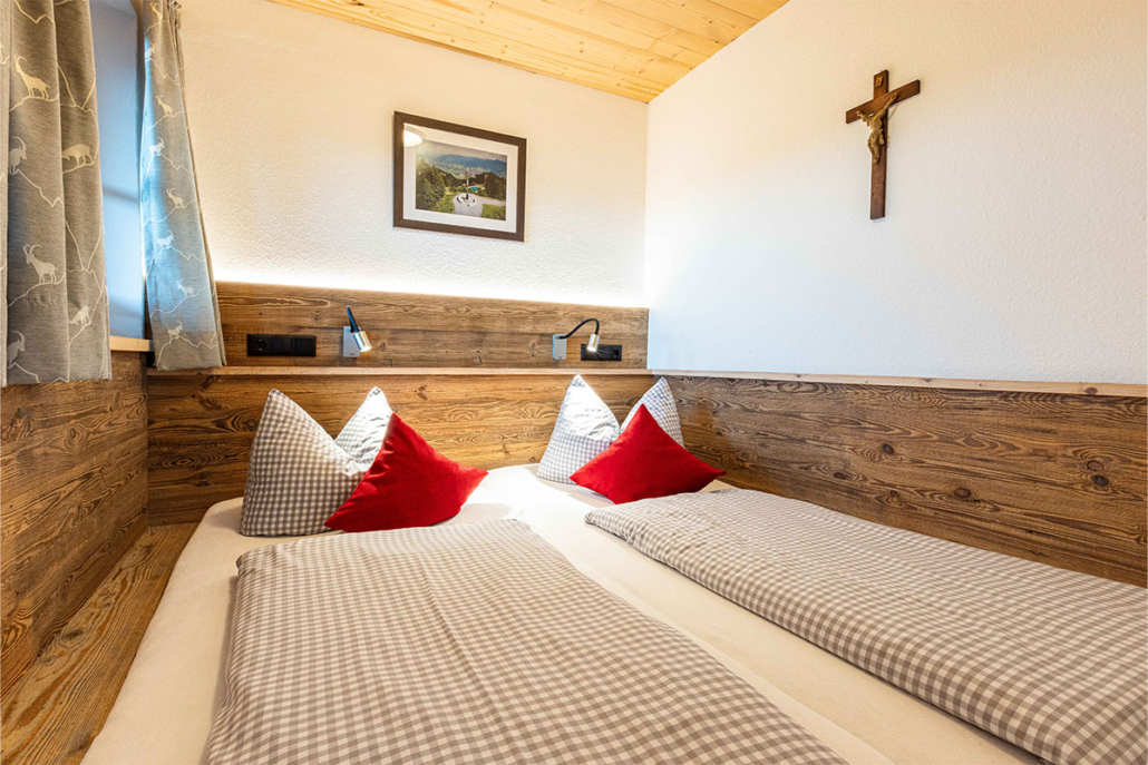 - Schlafzimmer mit Doppelbett und Verdunklungsmöglichkeit