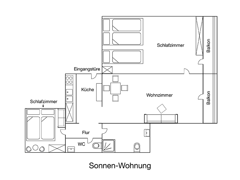 Die Sonnenwohnung macht ihrem Namen alle Ehre, da sich die meisten Zimmer auf der Südseite befinden.