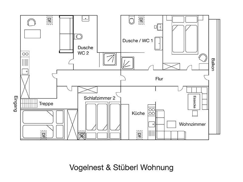 - 100 qm, max. 6 Erwachsene + 2 (Klein-) Kinder, Nichtraucher